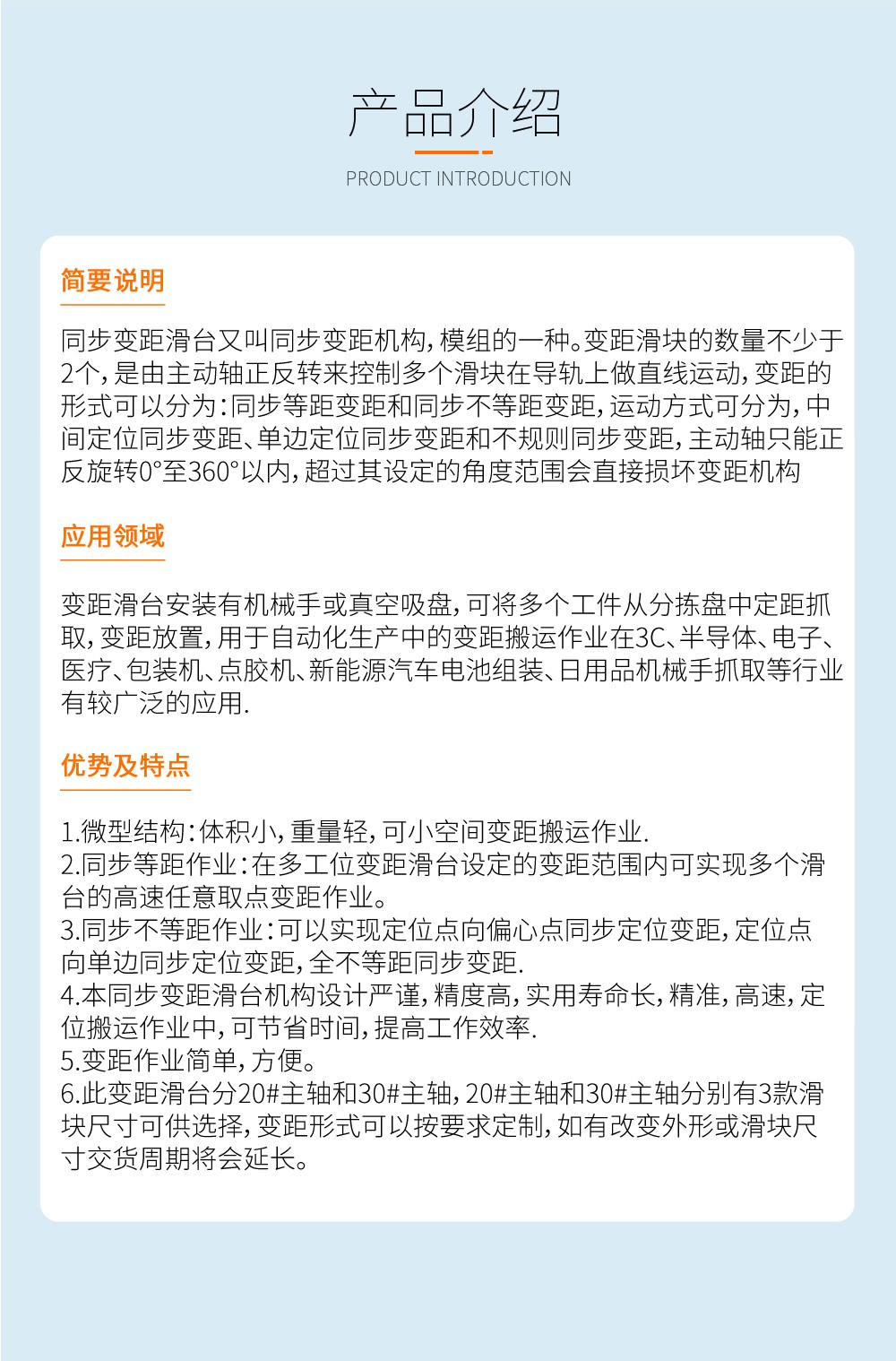 專業從事研發、生產和銷售:自動化精密變距滑臺、變距模組